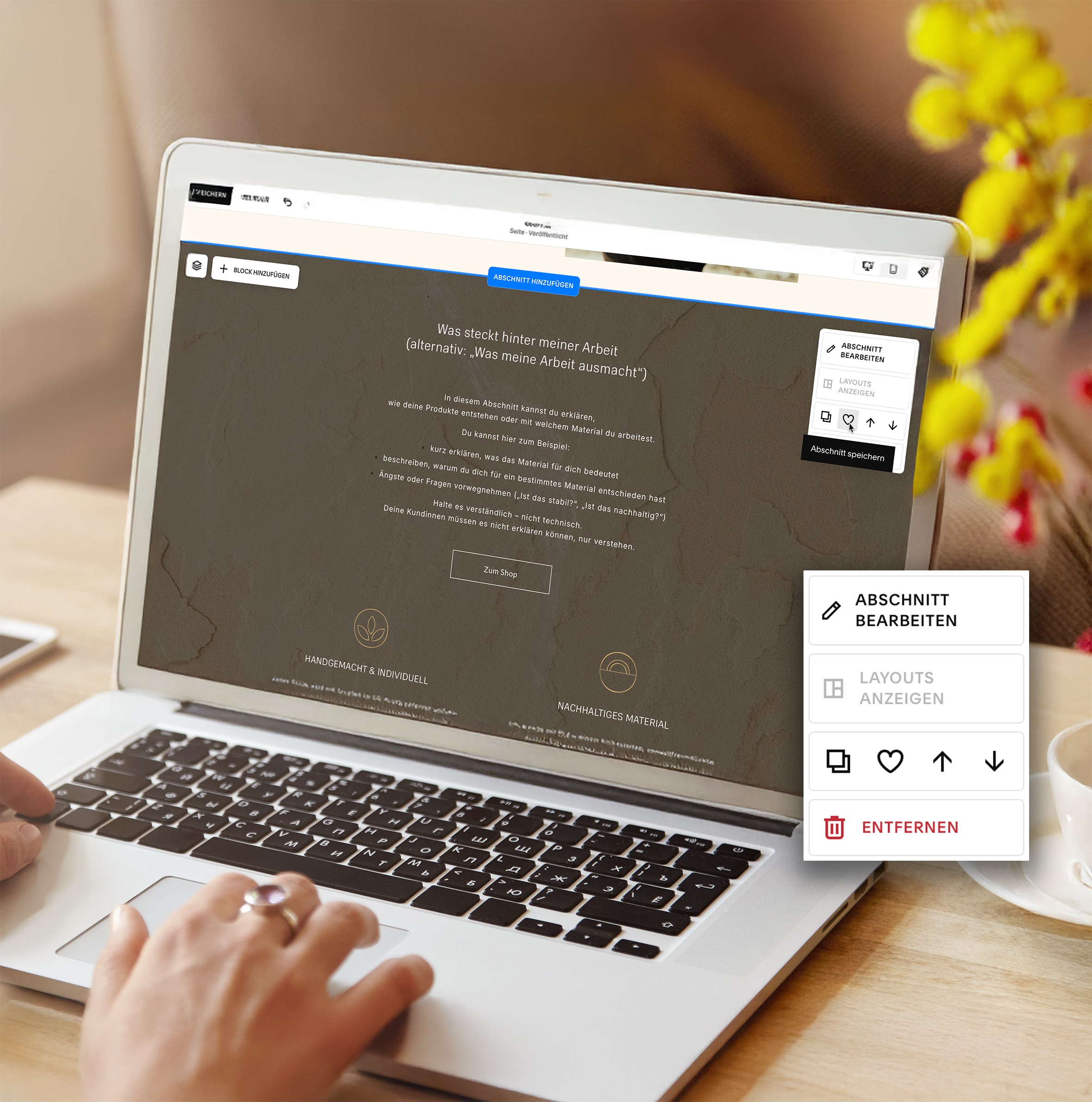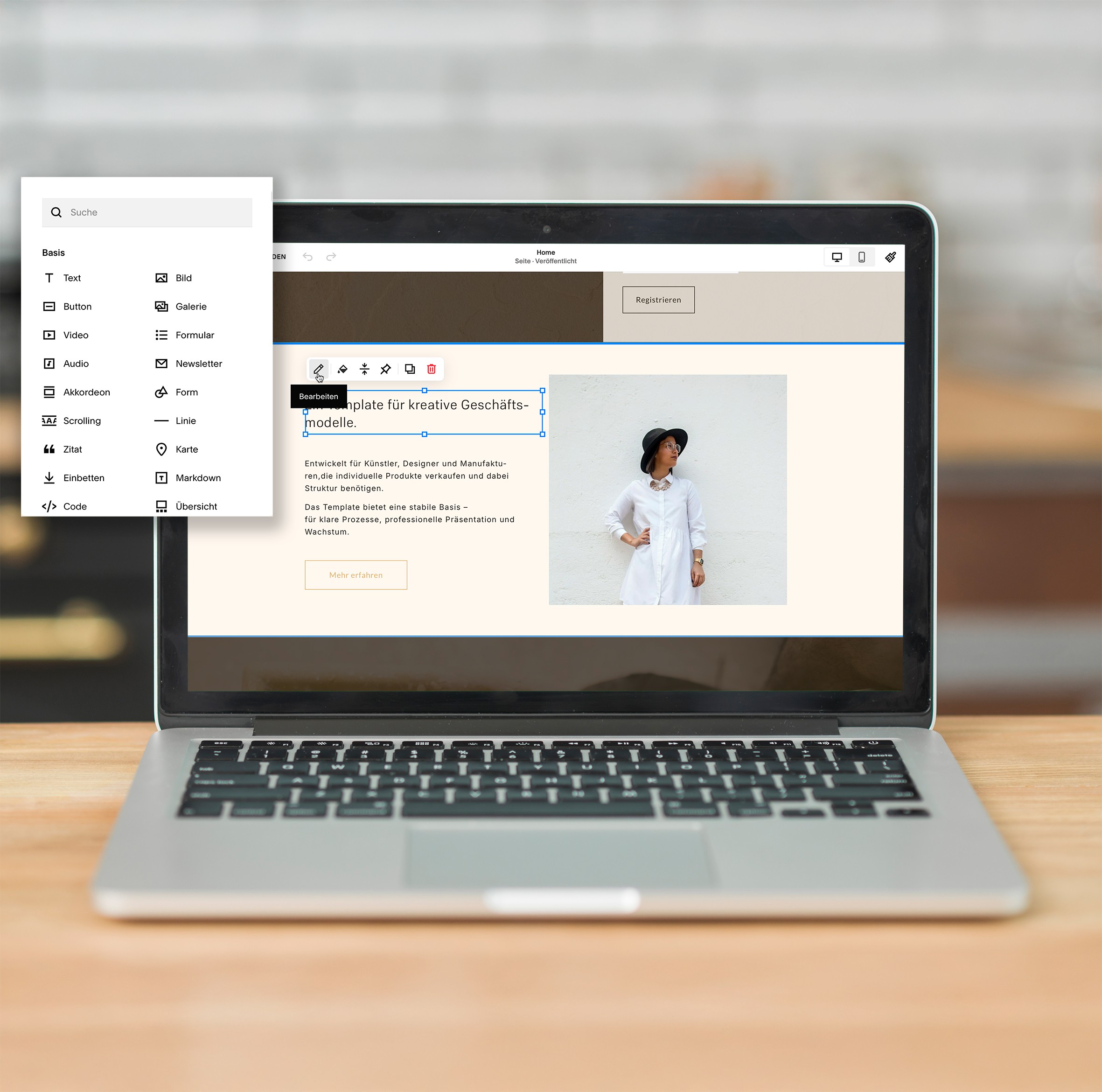 Passe deine Website ganz in Ruhe im Squarespace-Editor an.