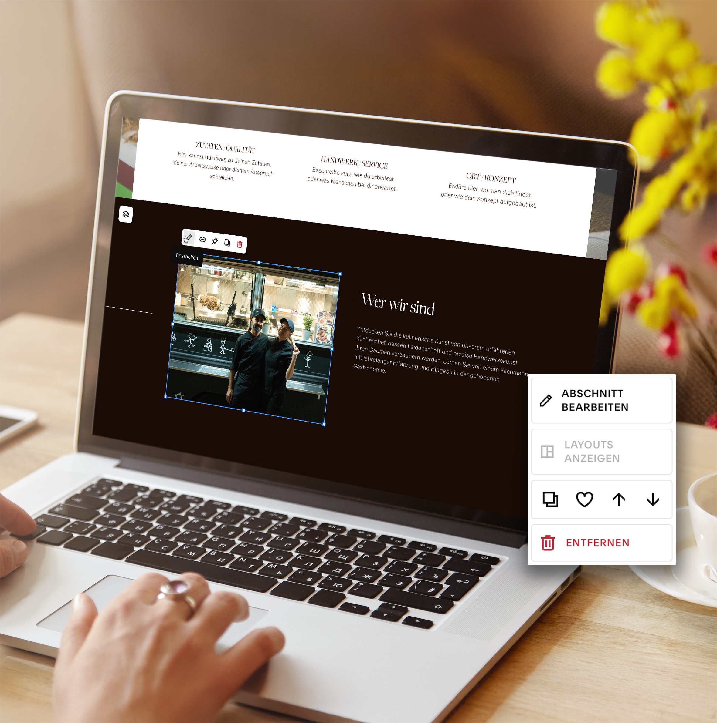 Passe das Template genau so an, wie du es brauchst – minimal oder umfangreich. Mit dem intuitiven Drag-and-Drop-Editor kannst du bestehende Layouts verändern, neue Abschnitte ergänzen und deine Seiten flexibel erweitern.