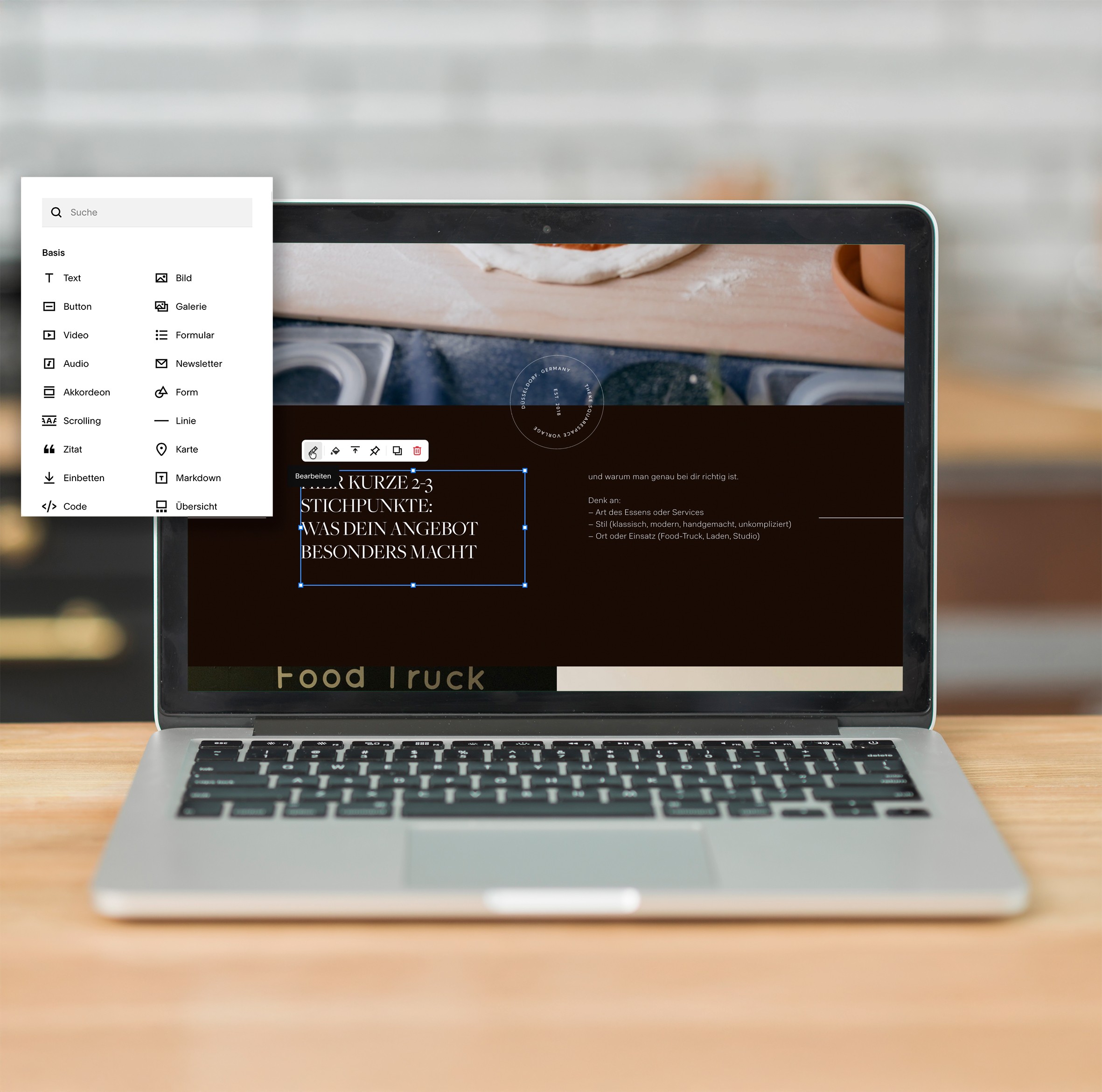 Mit der integrierten Schritt-für-Schritt-Anleitung lernst du, wie du Schriften, Farben, Bilder, Texte und Layouts so anpasst, dass sie zu deinem Business passen – ohne technisches Vorwissen.